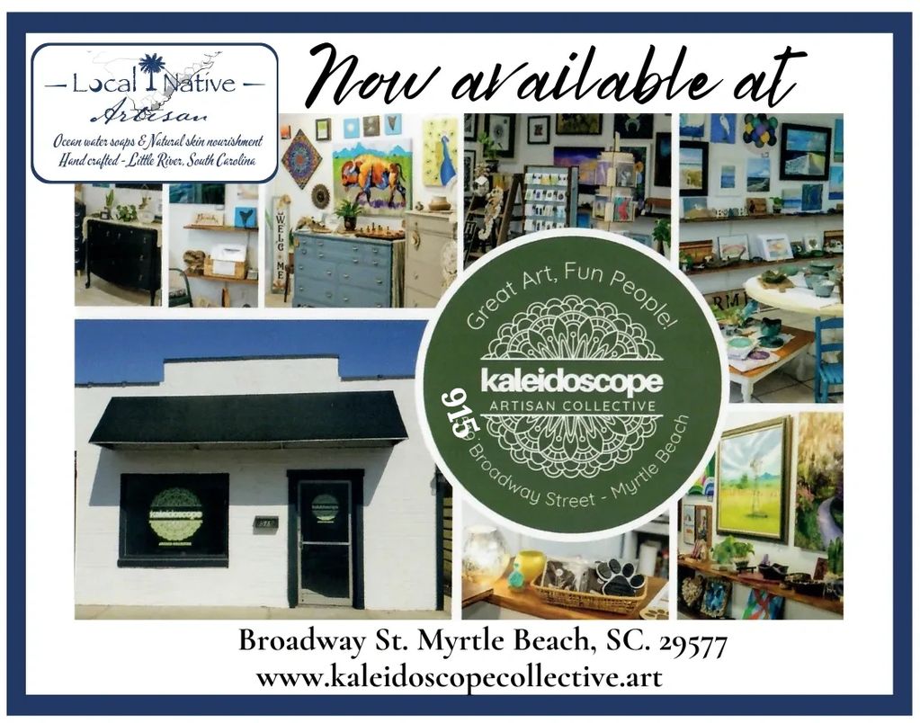 Local Native Artisan creations are now at Kaleidoscope Artisan Collective in downtown Myrtle Beach, SC. Visit www.kaleidoscopecollective.art or call 843.232.7642. 915 Broadway Street, Myrtle Beach, SC.